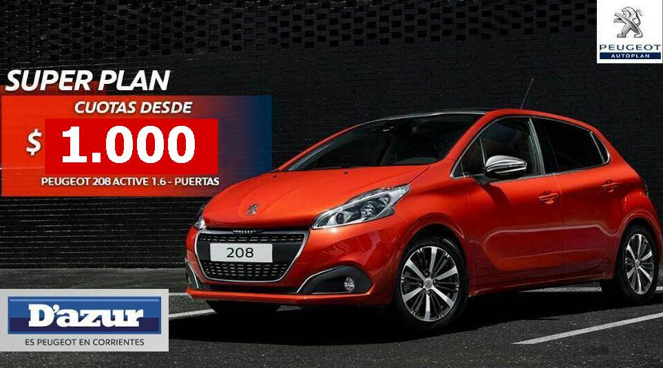 Se acerca la gran inauguración en Goya, que estas esperadno para ser parte de esta gran familia. Conseguí ahora tu Peugeot 208 Active 1.6 N con una suscripción de tan solo $1.000. Cuota 2 a 10 con importantes bonificaciones, con cuotas al alcance de tu bolsillo. Sin tener que pasar por banco o financieras. Hoy llegar a ese 0 km es mucho mas fácil de lo que pensás, que estas esperando para ser parte de esta gran familia no podes dejar pasar esta oportunidad. Si querés mas información envíanos un SMS o un whatsapp al 3794651455 o al 3794359669 y un asesor se comunicara con vos.