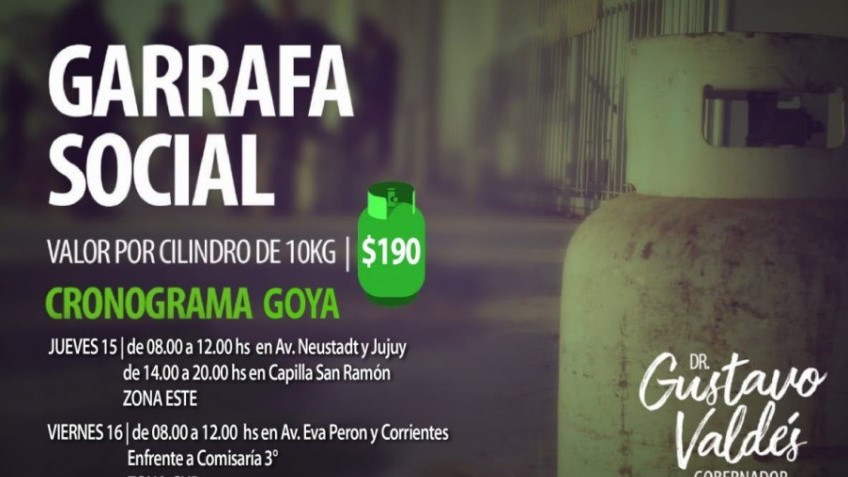 Este Programa, lo implementa el Gobierno de la Provincia, es una medida establecida por el gobernador Gustavo Valdés destinada a ayudar a la economía de los vecinos, en articulación con la Municipalidad de Goya, estará en sectores de la zona este y zona sur, donde se realizara la venta de tubos de 10kg a $190.