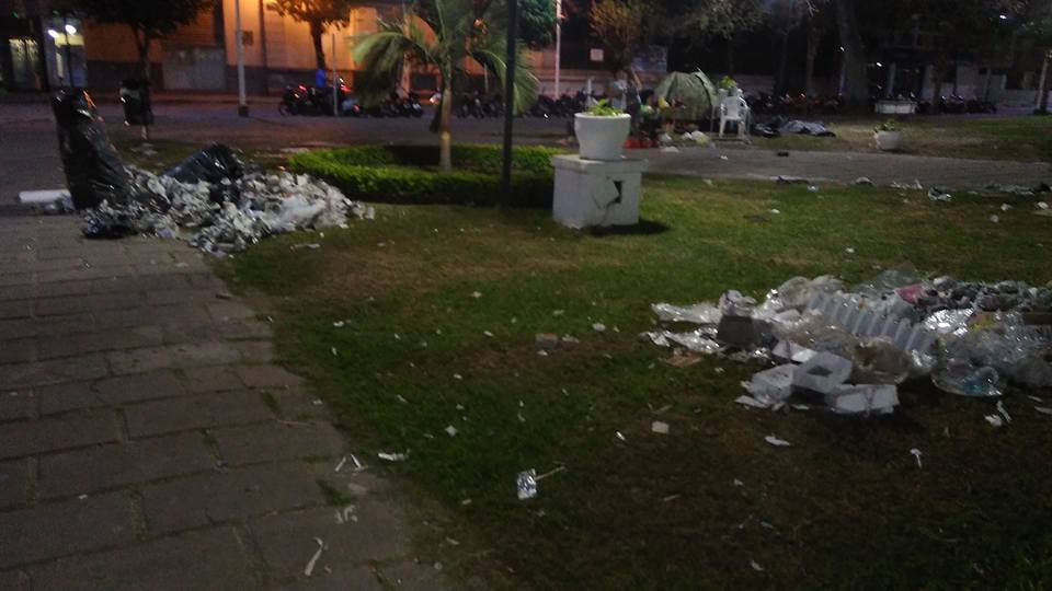 La señora Spagnolo manifestó su enojo ante la el desastre que quedo en la plaza central de Goya, donde dijo, “se les podría exigir a los feriantes que la plaza dejen limpia, cómo hacemos los artesanos que cada uno limpia su espacio, pobre gente los placeros que tuvieron que limpiar y también baldear la plaza, ellos no son sirvientes nuestros”.