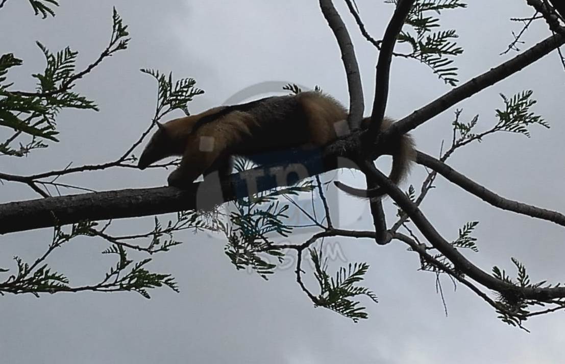 Así como refleja la imagen apareció en un árbol frente al CIC norte de Goya un oso melero. Personal de dicho lugar dio aviso al encargado del serpentario municipal de la presencia del animal. Minutos mas tarde Juan Carlos Peña se constituyo en el lugar y logro rescatarlo. Se logra apreciar que tiene una herida en la punta de la cola. imágenes exclusivas.