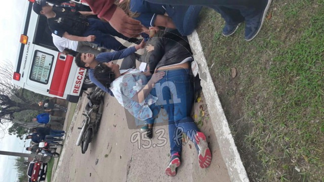 Ocurrió cerca de las 15,30 hs en la zona norte de la ciudad entre las calle Salta y Pago Largo en donde dos jóvenes estudiantes del ISG que se desplazaban a bordo de una motocicleta colisionaron con un automóvil, una de las victimas fue identificada como Duran Lourdes quien presenta lesiones grave (Posible fractura de Pelvis y de Cadera) en tanto su compañera Sánchez Flavia sufrió heridas leves. El conductor del rodado fue identificado como Fleitas David.