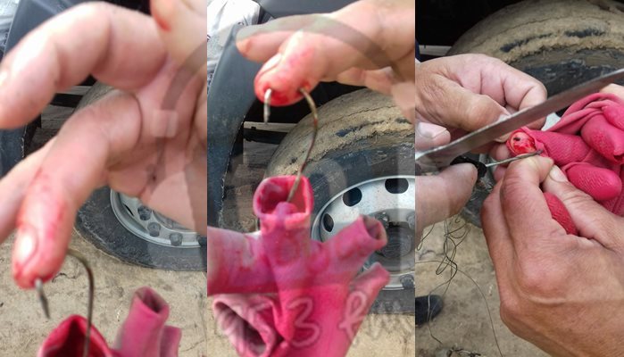 A un recolector de residuos se le incrustó un anzuelo en el dedo anular