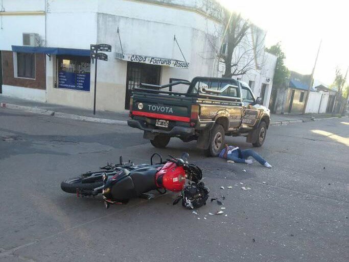 En las calles José Gómez y Pujol protagonizaron un accidente de tránsito, una moto Guerrero Bajaj y una pick up Toyota perteneciente a un comercio de nuestra ciudad. El hecho dejó como saldo, al conductor de la moto, de apellido Zorzoli, que termino con politraumatismos y heridas cortantes. Fue asistido por Bomberos y luego fue trasladado al Hospital en ambulancia.