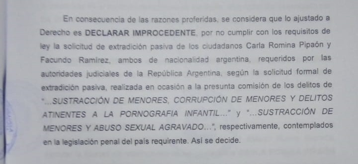 El pasado jueves, Facundo Ramírez se contactó con la redacción de TNGoya, mediante audios de WhatsApp y envió imágenes del expediente judicial en el caso Tomasella_Pipaon. Donde Lucio pidió la restitución internacional de sus hijas y ser extraditadas a Goya. El Tribunal 3 de primera instancia, de juicio de protección de niños y niñas adolescente, denegó el pedido, abalando que las niñas, están amparadas por un refugio permanente y estar radicadas desde hace dos años en Venezuela. A continuación, adjuntamos los audios y copias de la decisión judicial.