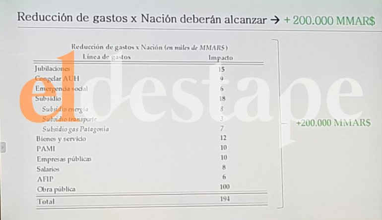 El documento señala que se recortarán 15 mil millones de pesos de jubilaciones y 9 mil millones de AUH. El documento que revela El Destape fue entregado por un importante ministro a un gobernador para que elija cuales son los gastos que desea recortar en su provincia.