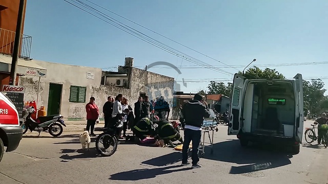 Cerca del mediodía del lunes se registro un siniestro vial por calle Ñaembe esquina Formosa en donde una mujer junto a su hija de 11 años terminaron sobre el pavimento.