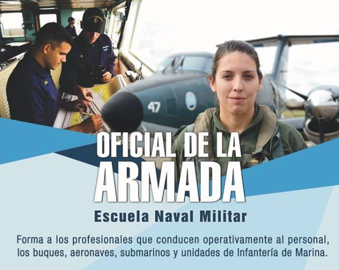 La oferta educativa propone a jóvenes de ambos sexo incorporarse a la Armada Argentina, en la Escuela Naval Militar para cursar la carrera de oficial de la Armada, del cual egresan con el grado militar de guardiamarina y con un título universitario de licenciado en Recursos Navales para la Defensa, que tiene validez nacional ya que está otorgado por el Ministerio de Educación Nacional.