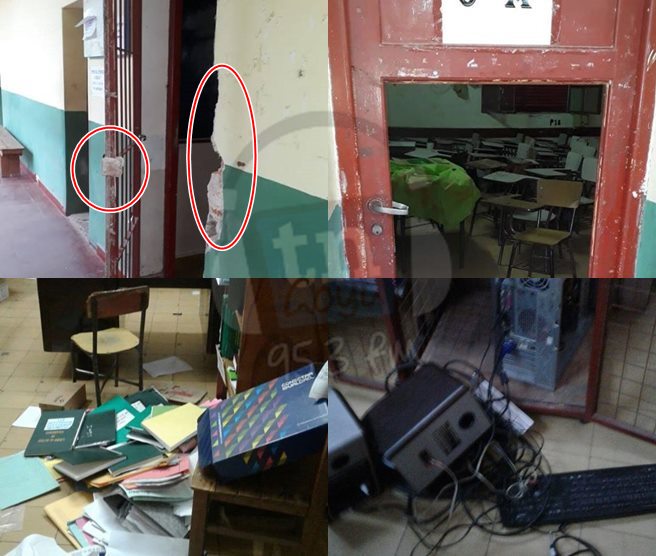 Se registró por segunda vez vandalismo y robo en colegio anexo López Alvarado que funciona en las instalaciones Escuela del Sur, ubicada en Entre Ríos y Evaristo López. Como se aprecia en las imágenes, utilizaron mazas para romper la pared conde están las bisagras de una reja. Se informó de manera oficial que se llevó equipo de audio, documentaciones, bafles, computadoras y llaves. En las últimas dos semanas es el segundo ilícito. Este hecho genera preocupación a las autoridades del establecimiento, teniendo en cuenta el modo en el cual actuaron. IMÁGENES