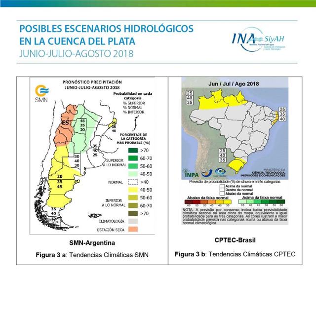 El Instituto Correntino del Agua y del Ambiente (ICAA) dio a conocer el informe del Instituto Nacional del Agua (INA) respecto a los posibles escenarios hidrológicos en la Cuenca del Plata durante el período junio-julio-agosto 2018.