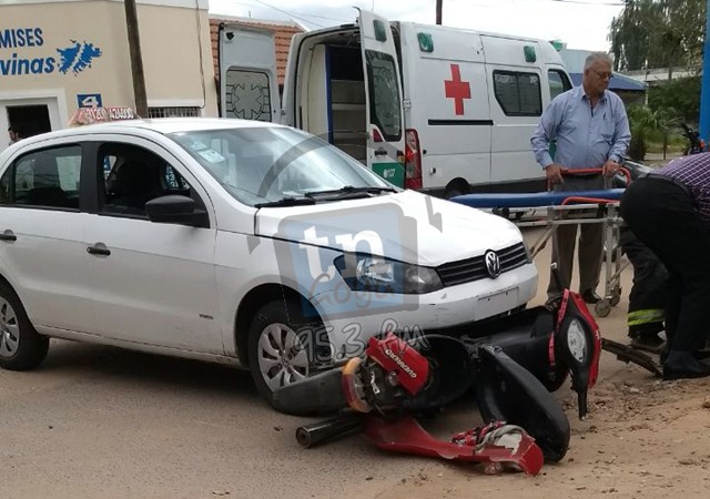 En la siesta del domingo se registro un espectacular siniestro que pudo terminar en tragedia. El hecho ocurrió en la esquina de Monte Caseros y Pago Largo en la zona norte de la ciudad en donde un automóvil colisiono a una motocicleta marca Guerrero de color rojo sin dominio en la que iban tres personas, uno de ellos una nena quien afortunadamente solo resulto con escoriaciones, en tanto uno de los ocupantes del rodado identificado como Rodríguez Guillermo termino con fractura en una de sus piernas, la tercer persona resulto con golpes.