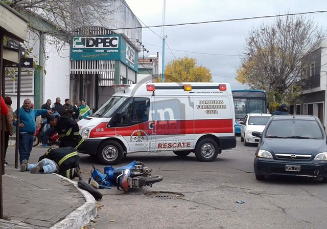 Un nuevo siniestro vial se dio en la siesta del viernes en la intersección de las calles José Gómez y Entre Ríos en donde el conductor de un automóvil guiado por una señora de apellido GUEVARA impacto contra un motociclista a bordo de una motocicleta Guerrero de color azul dominio 344 GRQ conducido por un hombre identificado como Fernández Bernardino quien termino sobre la cinta asfáltica.