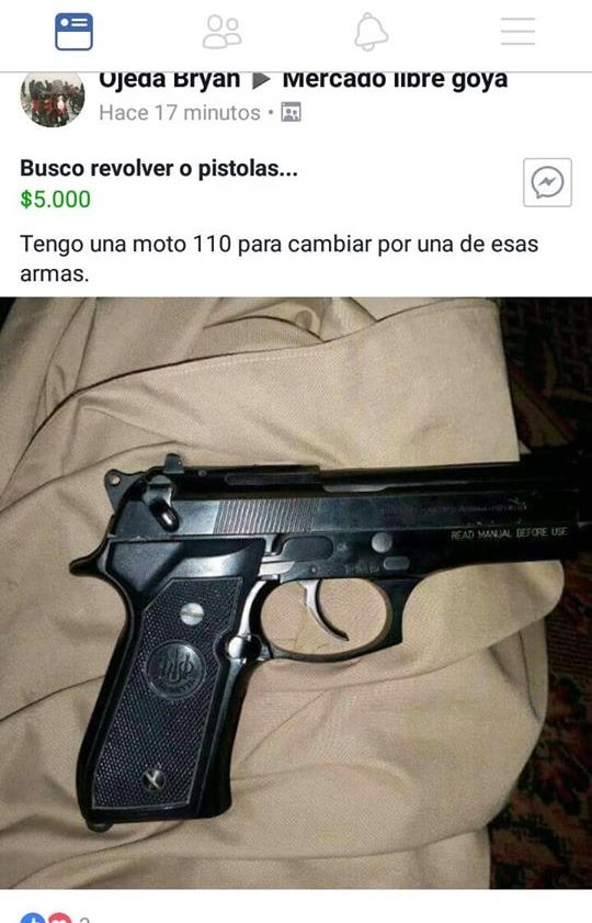 Pide hacer trueque de una moto por arma de fuego