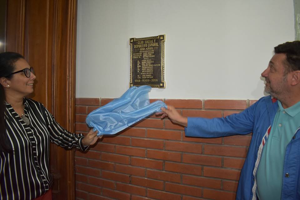 En la noche del martes la comisión directiva del Club Español, encabezada por su presidente Laura Delgado, realizó el acto de inauguración del salón con la fotografía de todos los presidentes del club a lo largo de la historia y una placa conmemorativa por los 100 años de existencia. El intendente municipal Arq. José Sananez estuvo presente y resaltó lo importante de esta institución y los logros de la actual comisión.