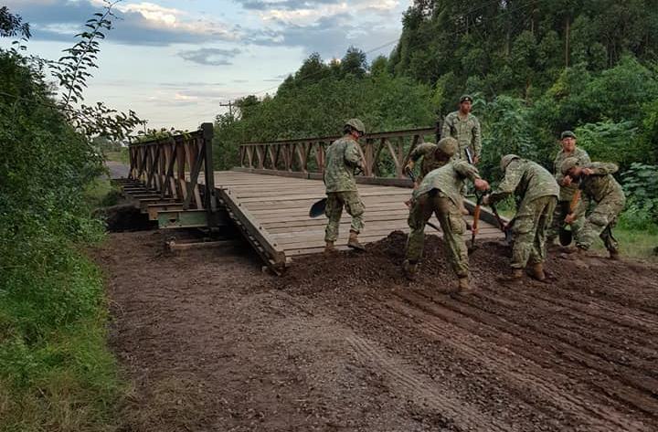 El Ejercito Argentino, personal del Batallón de Ingenieros de Montes 12, con asiento en la ciudad de Goya, coloco durante la jornada del martes la instalación del Puente Bailey en Ruta Provincial N° 19, en el Municipio de Carolina. Que comunica Colonia Carolina (Ruta Nacional 12), con Isabel Victoria entre otros parajes de la zona. El puente que se instala en el lugar tendrá una longitud de aproximadamente 30 metros.