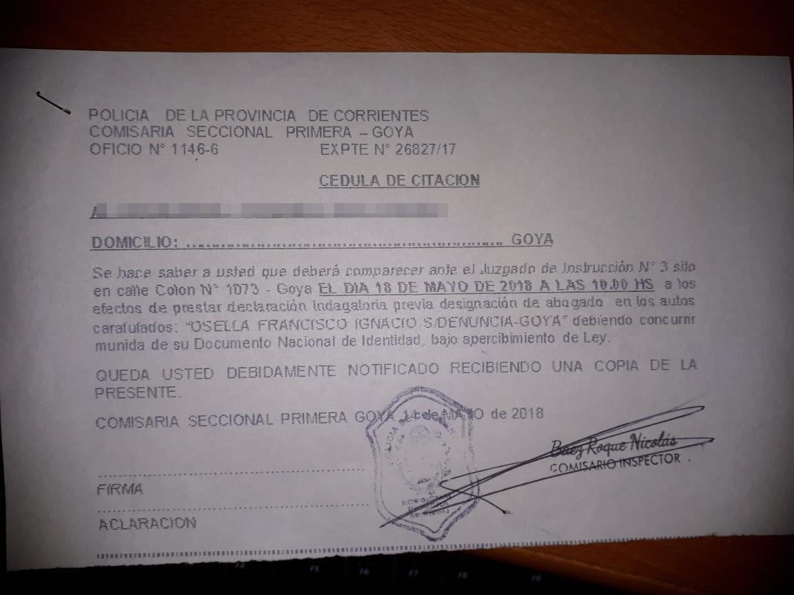 La denuncia la había realizado el intendente Ignacio Osella en el juzgado de su ex abogado personal en la causa contra Dario Zapata y hoy juez de instrucción Darío Ortiz quien hasta el año 2009 también fue jefe de personal de la municipalidad de Goya en la gestión de Osella por la habilitación del HCD local al pago a término al ejecutivo municipal. La indagatoria recayó en los 10 concejales del FPV de la gestión de Bassi, entre ellos, Monzón, Baldi, González, Ramírez, Kalemberg, Pereira, Reyes, Ginochi, Guerreño e Ibañez. Lo cierto es que recusaran a Ortiz de la causa por su fuerte vínculo con Osella y además le iniciaran un juicio político por incumplimiento de deberes de funcionario público.