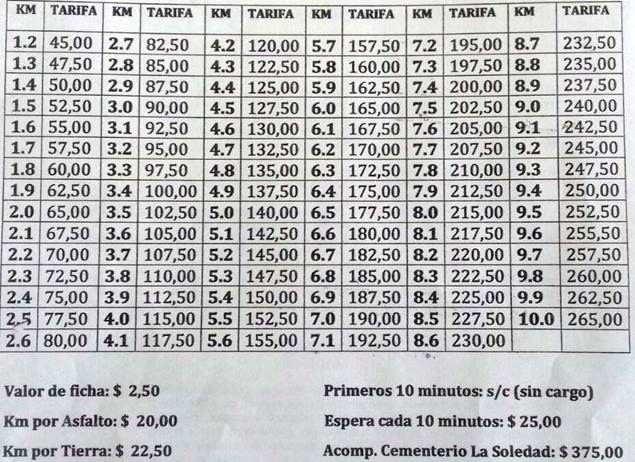 De acuerdo al pedido de choferes de remises y taxis, solicitando al municipio de Goya la actualización tarifaria del servicio que prestan; y que fundan su pedido de acuerdo a las Ordenanzas vigentes y el incremento ocurrido en los valores del combustible que se toma de referencia para la aplicación de la nueva escala tarifaria.