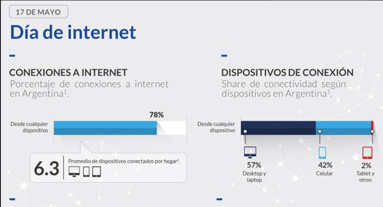 El 88% de los argentinos se conecta al menos una vez al día a Internet y siete de cada diez lo hacen a través del celular, en una tendencia que crece e impulsa la demanda de datos móviles. Así lo señalaron las empresas Fibertel y Personal al mostrar una "radiografía" del uso de la "red de redes" y las tendencias del consumo local en la jornada que se conmemora "El Día de Internet".