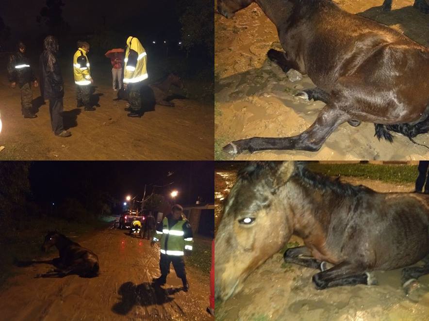 Vecina de nuestra ciudad, perteneciente a una Asociación Proteccionista "Solidaridad por los Animales", tomo conocimiento de la situación del equino, y acudió al lugar para impedir cualquier decisión que atentara contra la vida del animal. Ella sola primeramente enfrentó la situación, se quedó bajo la lluvia para a socorrer al caballo, mojada y con frío pidió ayuda por cadenas de WhatsApp y Facebook, llegada la noche se requirió colaboración de un muchacho para que la reemplace en el lugar, permaneciendo al cuidado del equino atrapado.