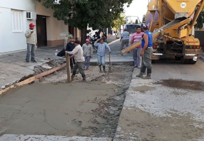 La Municipalidad de Goya, a través de la Secretaría de Obras públicas, se encuentra trabajando en el microcentro, en el mejoramiento de calles, en este caso con trabajos de bacheo de hormigón en una superficie de unos 9 metros de largo por 3,60 de ancho.