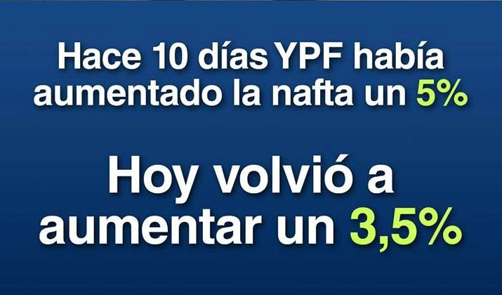 Es así que los surtidores locales de la compañía multinacional, tuvieron esta oscilación: súper de 28,51 a 28,99 pesos (+48 centavos); premium de 31,69 a 31,91 pesos (+22 centavos); formula diesel de 23,95 a 24,59 pesos (+36 centavos); diesel premium de 27,55 a 28,48 (+93 centavos).