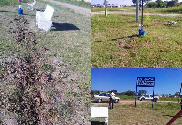 Vecinos indignados por el robo de 15 metros de cable subterráneos en la Plaza 8 de Marzo en zona norte de Goya. Ayer trabajaron incansablemente para limpiar el lugar, y hoy se encontraron con la triste noticia. La presidente del barrio, Fernanda Diez, escribió en su cuenta de Facebook, lo sucedido; “Hoy un lunes distinto con mucha bronca e impotencia ayer tratamos de limpiar un poco nuestra plaza porque sabemos que somos muchos los barrios y siempre estamos para sumar, hoy nos robaron de nuestra plaza 15 mts de cable subterráneo de la iluminación no tengo adjetivo para ponerle a esta clase de gente que hace esto”