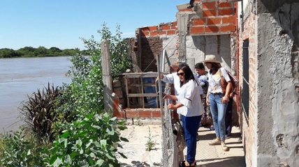 El Municipio a través de la Secretaria de Promoción Social y Desarrollo Humano, junto al PRO.DE.GO efectuó un relevamiento de una vivienda, ubicada en la zona costera de paraje El Remanso, esta casa perteneciente a la familia Acosta, se encuentra con peligro de derrumbe debido al socavamiento del rio.