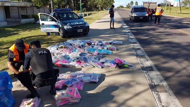 En un operativo llevado a cabo en Ruta Provincial 27 cerca de Lavalle, personal de la Policía Federal Goya logró secuestrar casi 2.000 prendas de vestir ingresadas ilegalmente al país por un valor aproximado de 300 mil pesos, que eran transportadas en una Chevrolet Tracker.