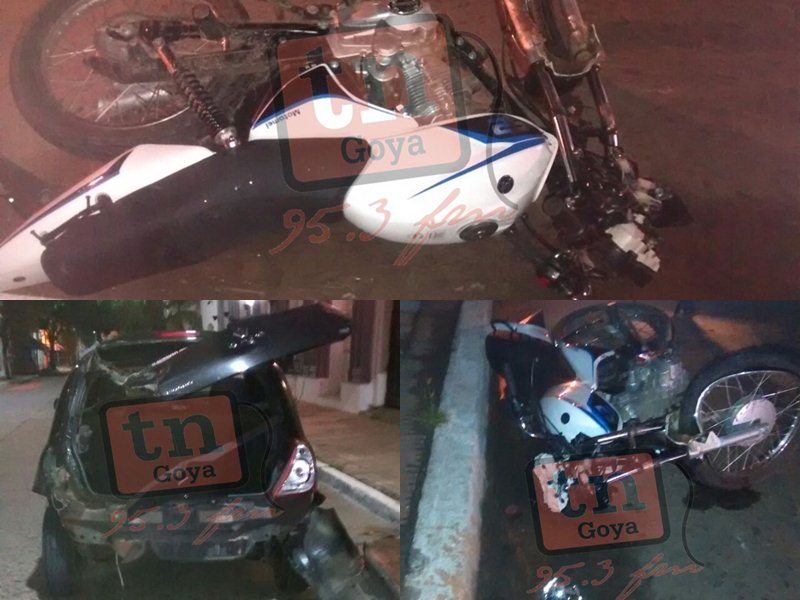 Motociclista destruye parte trasera de un Renault Clio, ocurrió en Colon y Alvear esta madrugada. El conductor de la moto resulto con gravísimas lesiones, fue asistido por Bomberos y se encuentra internado en el Hospital Regional, los datos se desconocen hasta el momento, debido a que estaba muy herido y fue trasladado urgente al nosocomio.