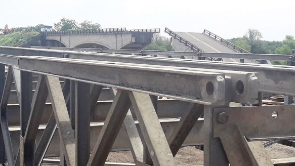Ya se construyeron los terraplenes, el pedraplén y el hormigonado de los pilotes del lado de Goya, con cuatro camisas perdidas con una profundidad de 24 metros. Estas estructuras serán sostén de los tres tramos de puente Bailey de 36 metros y medio de largo cada uno. Falta hormigonar las pilas del lado de Esquina, realizar los cabezales en esas estructuras y en el ubicado en el pedraplén del lado Goya.