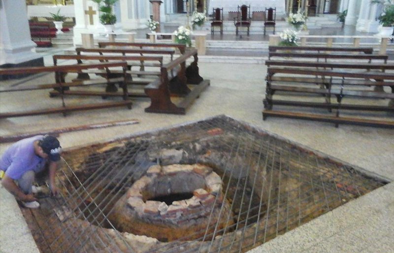Continúan los trabajos de mantenimiento en el piso de la Catedral de Goya con la consolidación de las partes que sufrieron algunas averías alrededor del pozo hallado hace 15 días y paralelamente, buscan presupuesto para la cobertura transparente que cubrirá la zona para que pueda ser observado por los feligreses.