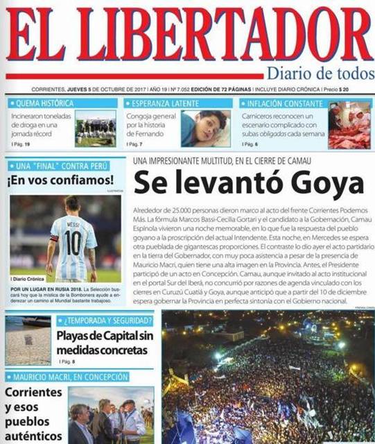 Goya se levantó, así titularon los medios provinciales el acto de Camau y Bassi