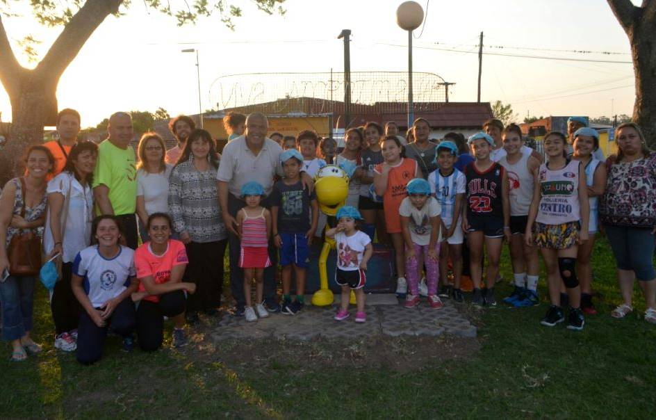 Gerardo Bassi inauguró la escultura de Clemente en la plaza del barrio 9 de Julio