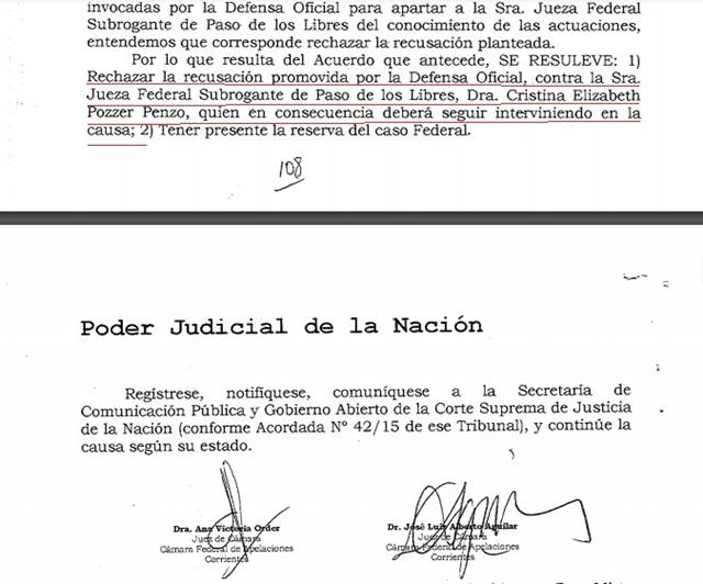 La Cámara Federal de Apelaciones de Corrientes rechazó hoy el pedido para apartar a la jueza Cristina Pozzer Penzo en la causa que procesó a un exfiscal y un exjefe de Gendarmería por delito de explotación sexual en Paso de los Libres y que sugirió investigar también al gobernador de la provincia, Ricardo Colombi.