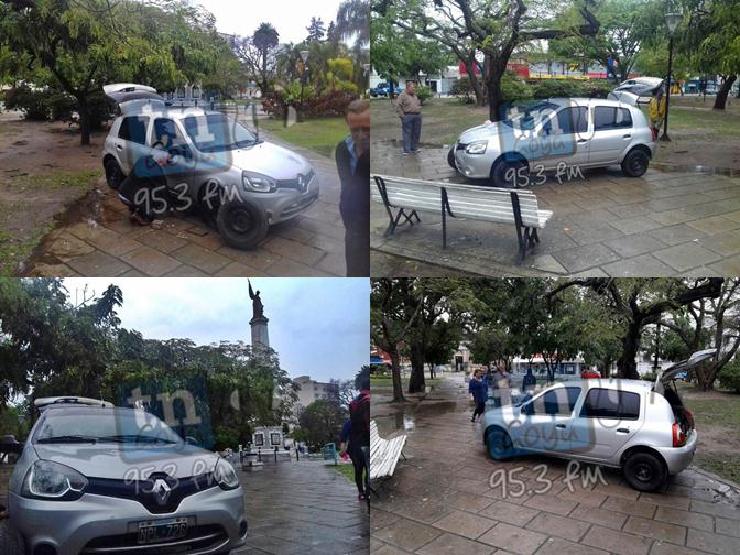 Mario Caimi, dueño de una empresa de remises, dejo estacionado su vehículo, un Renault Clío por calle Mariano I. Loza casi Colón y fue a realizar trámites en el banco, al volver, no estaba su automóvil en el lugar y en la búsqueda diviso que se encontraba dentro de la Plaza Mitre, donde un neumático estaba reventado causado aparentemente por un arma blanca. El misterioso hecho ocurrió hoy pasado el mediodía en Goya.