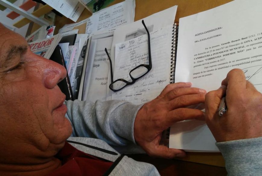 El intendente municipal firmo la aceptación de la candidatura a intendente de Goya por la alianza “Corrientes Podemos Mas” que competirá por un segundo periodo en las elecciones del 8 de octubre, acompañando la candidatura de Camau Espínola como Gobernador de la provincia de Corrientes. También se confirmo que Gerardo Bassi dará a conocer el sábado quien será su compañero de fórmula.