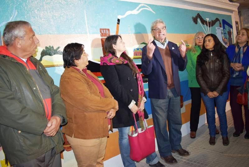 Acompañados de un nutrido público de goyanos aficionados a las artes plásticas, Nicasio Díaz Llanos (de Quequén), María de los Ángeles Espinosa (de Mar del Plata) y Gladys Mercedes Acevedo (anfitriona), inauguraron su mural: « Del puerto de Quequén al puerto de Goya», junto al intendente municipal Gerardo Bassi.