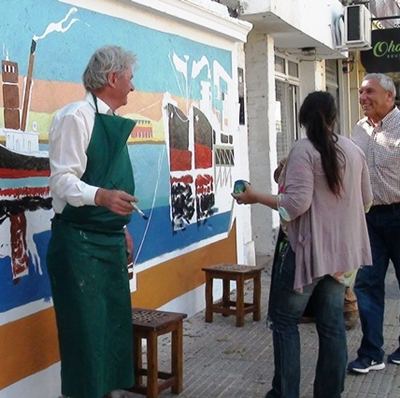 Pintaron juntos el mural: Del puerto de Quequén al puerto de Doña Goya