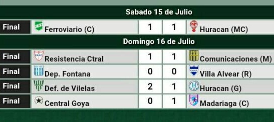 Huracan de Goya perdio 2 a 1 con Defensores de Puerto Vilelas y Central cayó ante Social Madariaga por 1 a 0