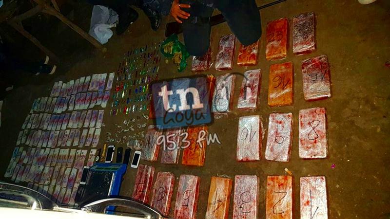 En horas de la tarde Policía federal de Goya, realizo allanamiento en una vivienda cerca de Santa Lucia, cuyo resultado dio positivo, informaron al cronista Juan Cruz Velásquez. Teléfonos celulares, dinero en efectivo, 26 panes de marihuana y la droga llamada alita de mosca, es parte de lo incautado. Habría cuatro personas detenidas. Primeras imágenes.