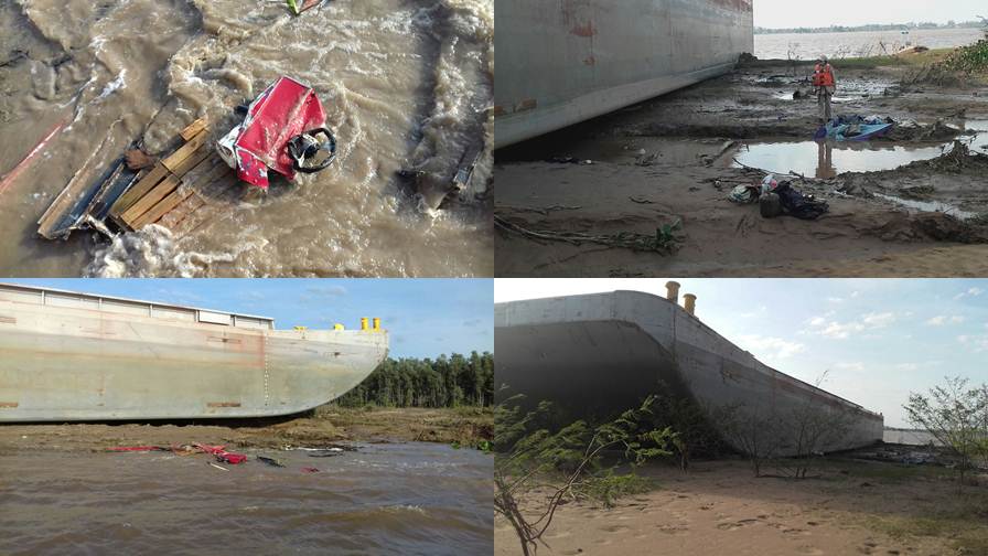 Remolcador se incrusto en la isla y aplasto una lancha