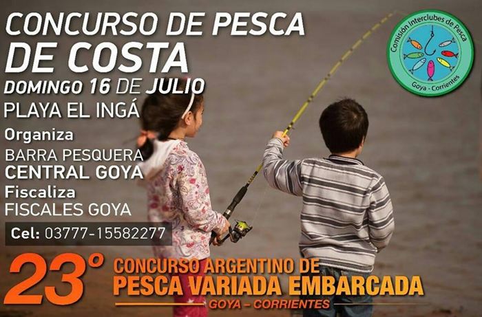 Para arrancar con todo las Vacaciones de Invierno, la Barra Pesquera Central Goya junto a la Comisión de Interclubes de Pesca, te invitan para este Domingo 16 de Julio a que partícipes del 3° Concurso de Pesca de Costa, a realizarse en la playa EL INGA , habrá importantes premios, sorteos y chocolate con facturas para los niños. Este evento, que cuenta con el apoyo municipal, se realizará en la playa “El Inga” a partir de las 9:00.