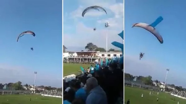 Insólito: un hincha sobrevoló en parapente el clásico goyano