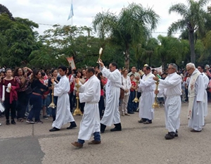 Cientos de feligreses, especialmente de los grupos de catequesis de todas las parroquias y capillas, participaron de la celebración eucarística y procesión de la solemnidad del Cuerpo y la Sangre de Cristo, el sábado a la tarde a partir de las 15. Esta fiesta conmemora la institución de la Eucaristía, que Jesús realizó en la Última Cena y que constituye el centro de la liturgia y del culto de la Iglesia católica.