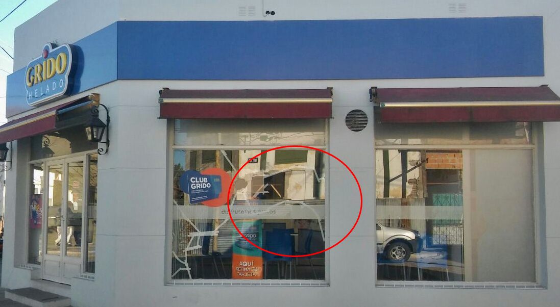 Batalla campal de jóvenes destrozaron vidriera de heladería