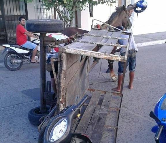 Pasadas las 08:30 en la mañana de hoy lunes, un carro tracción a sangre volcó al cruzar el semáforo ubicado en Colón y Alvear. Al ocurrir el hecho el equino se desboco y transeúntes lograron rescatarlo a tiempo, “el animal se asustó y pudo causar otro accidente”; manifestaron testigos. Los ocupantes resultaron ilesos. IMAGEN