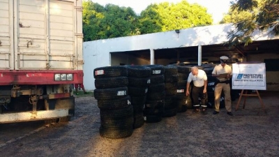 Aproximadamente a las 20 hs del lunes, la Prefectura Naval Bella Vista en un control sobre la Ruta provincial 27, detuvo un camión que transportaba n eumaticos sin la documentación que acreditara su origen y procedencia, el cargamento esta valuado por los peritos en alrededor de $935.000 mil pesos. Por orden del juzgado federal de turno, se detuvo a dos personas que iban en el rodado. (Ampliaremos)