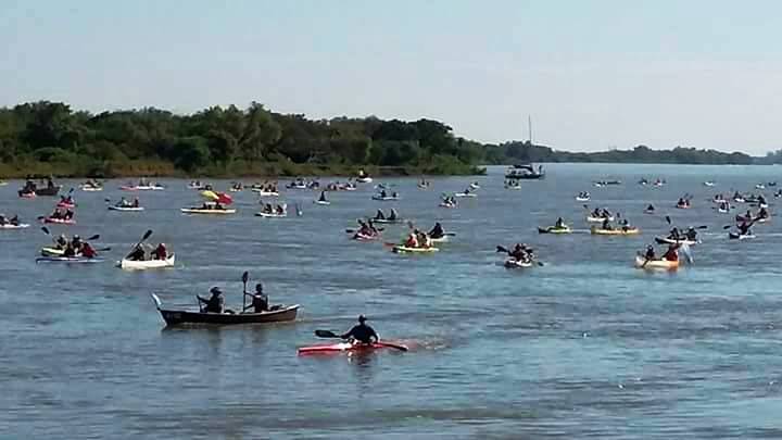 La flota contó con 175 botes, más embarcaciones de apoyo. Partieron pasadas las 09:00 de este lunes desde la playa El Ingá y remaron 40km por el Riacho Goya hasta la costa de la estancia El Cerrito. Allí compartieron una noche de música regional en vivo y un asado de camaradería.
