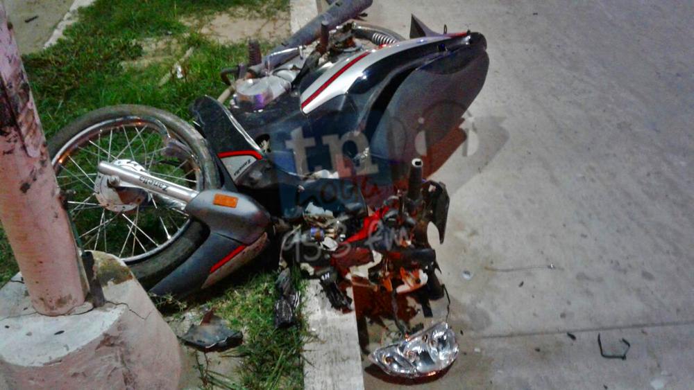 En la noche del jueves un motociclista de apellido Román, se incrusto contra un poste de alumbrado público, en Avda. del Trabajo y 9 de Julio. Transitaba en una motocicleta 110 c.c marca Zanella, estaba en aparente estado de ebriedad informaron las autoridades, fue trasladado al Hospital en ambulancia, tiene fracturada la clavícula. Impactantes imágenes del estado que quedo el rodado.