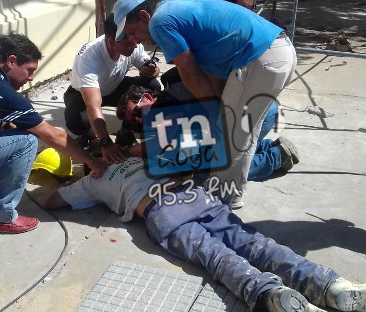 Un obrero que se encontraba trabajando por refacciones en el frente del Banco Nación de Goya identificado como Osvaldo Acuña oriundo de la vecina provincia de Santa Fe, cayó de un andamio que tiene unos 5 metros de altura. Ocurrió pasadas las 10 hs de este miércoles, fue asistido por una dotación de Bomberos debido a la gravedad del hecho, el mismo fue encontrado de Cubito Ventral, con signos de Trauma, dolores en varias partes del cuerpo y Politraumatismo por lo que se solicitó una unidad de trasladado como el de una ambulancia para ser trasladado al Hospital Regional. Recibió politraumatismos varios y se encuentra fuera de peligro.FOTO