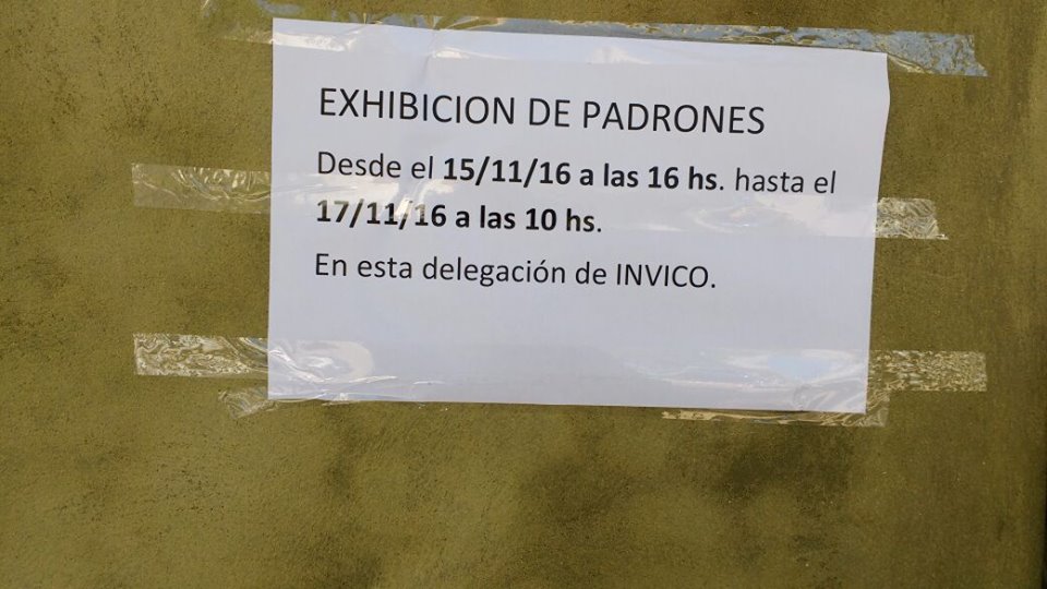 Desde hoy martes y hasta el jueves exhibición de padrones de invico